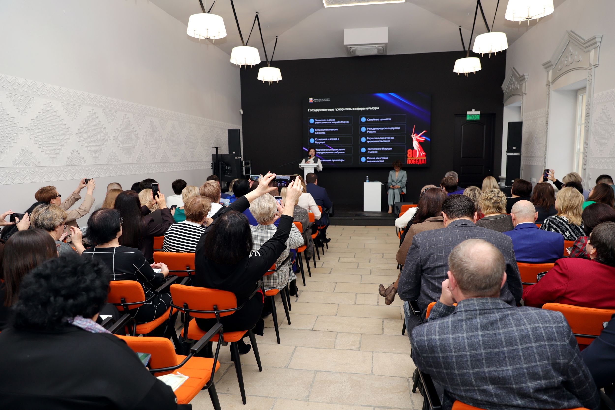 Первый заместитель министра культуры Алла Лигостаева подвела итоги работы учреждений культуры в Год защитника Отечества и 80-летия Великой Победы. Она отметила, что год был насыщен яркими и значимыми проектами, направленными на сохранение памяти о героях страны. Среди самых успешных – арт-реконструкция городсткого пространства «Весна 1945-го года», региональный проект театральных постановок «Театр о войне и Победе», патриотическая акция караоке-концерт «Любимые песни Победы» и другие. Замминистра отметила, что в 2026 году акцент будет делаться на участие учреждение культуры в массовых сетевых акциях.