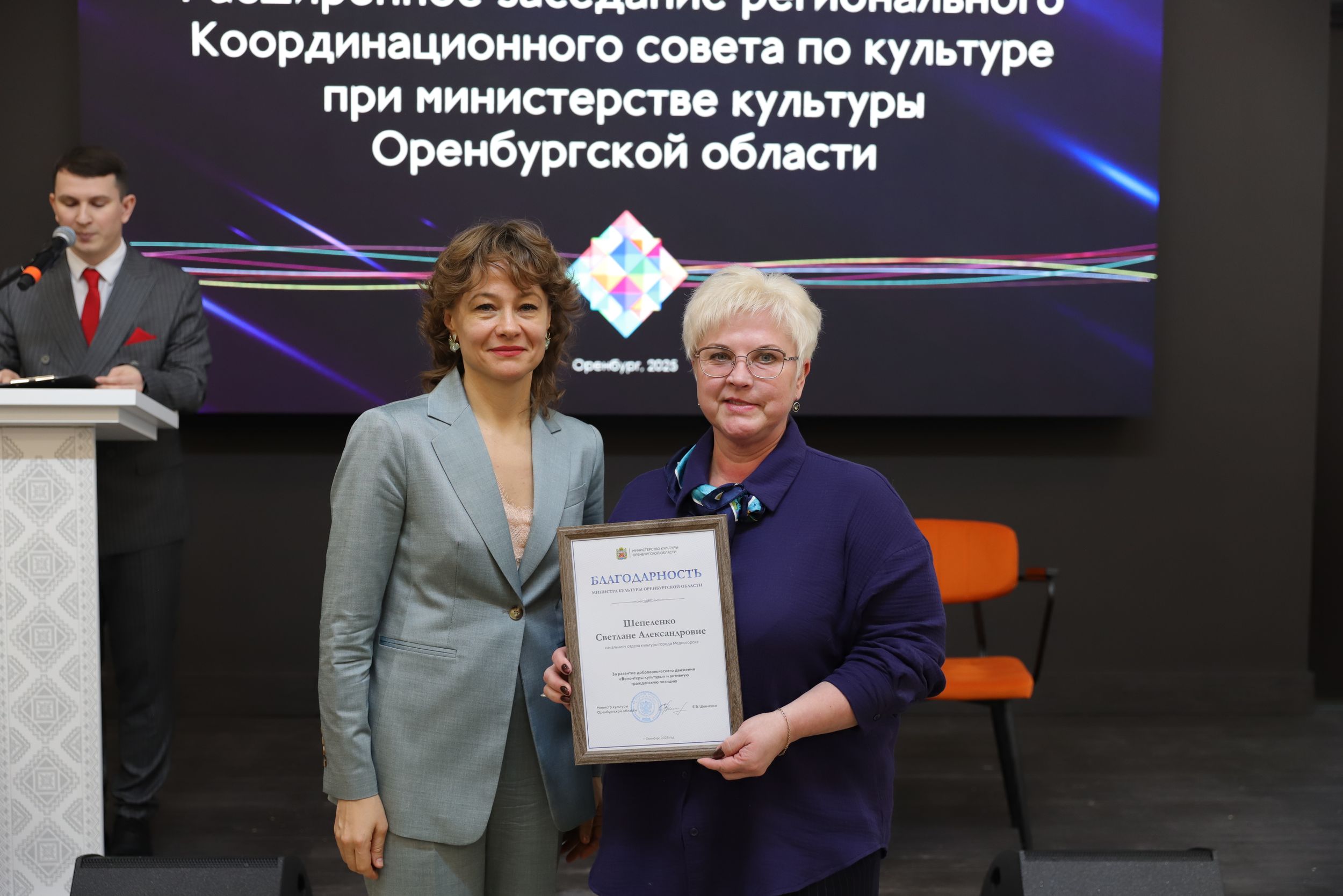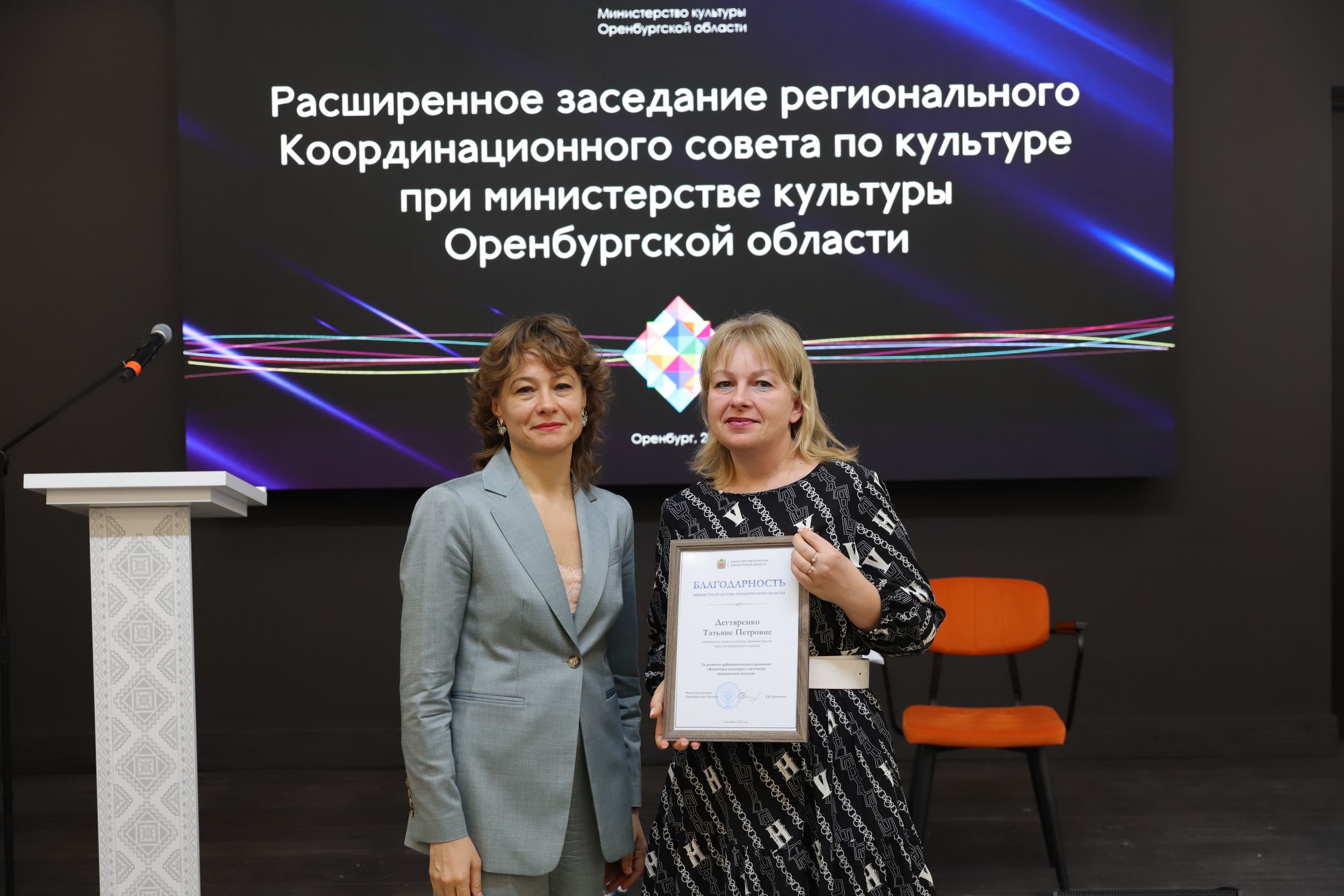 Завершился профессиональный разговор церемонией награждения. Почетной грамотой Оренбургской области был награжден директор Регионального центра развития культуры Оренбургской области Алексей Чурсин. Благодарностью министра культуры были отмечены руководители отделов культуры Грачевского, Домбаровского, Новоорского, Бугурусланского и Красногвардейского районов и города Медногорска.