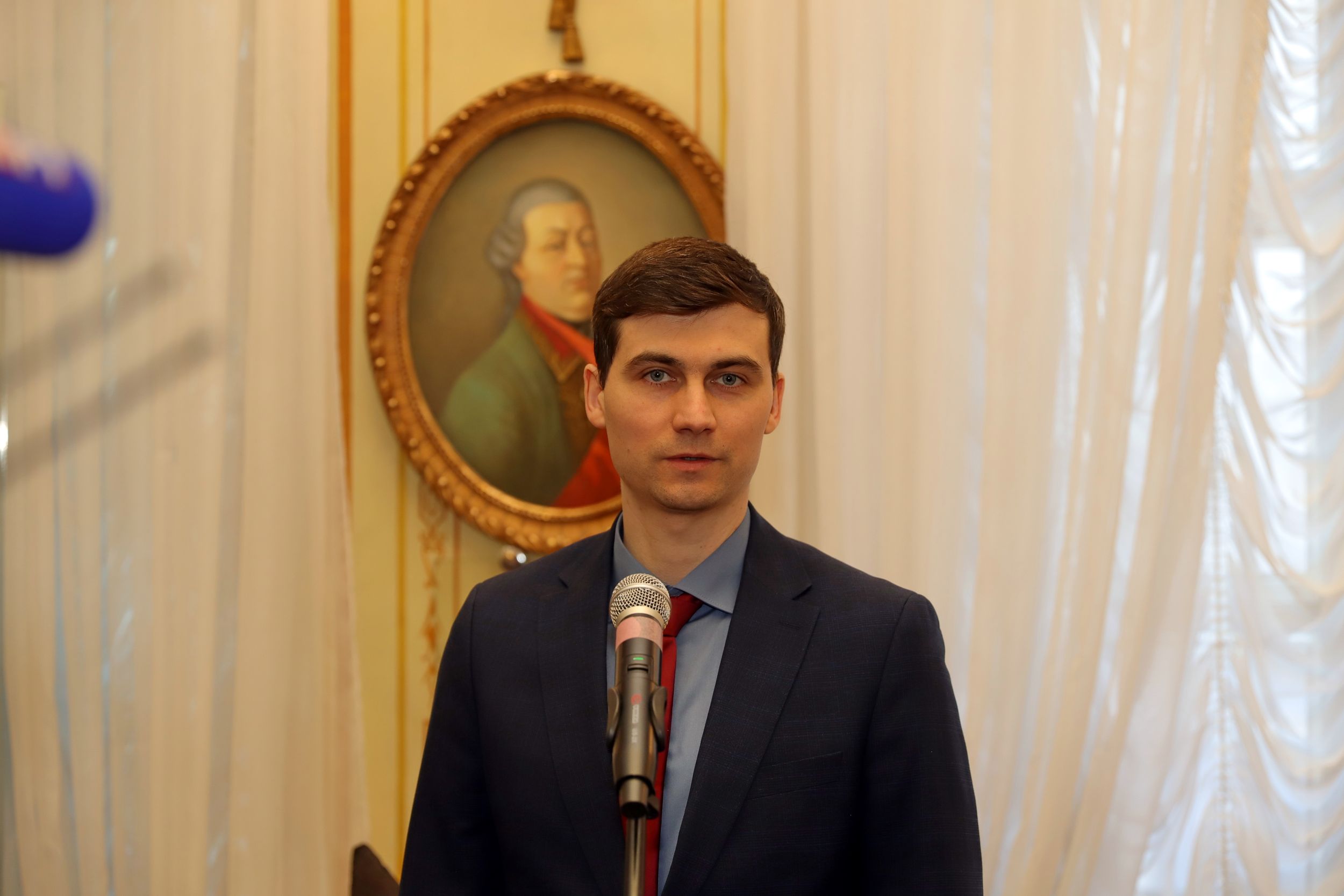 Ещё один гость - член дублирующего экипажа корабля «Союз МС-19», оператор художественного фильма «Вызов» Алексей Дудин. Он передал в дар музею видеоматериалы для фильма «Вызов», снятые на Международной космической станции.